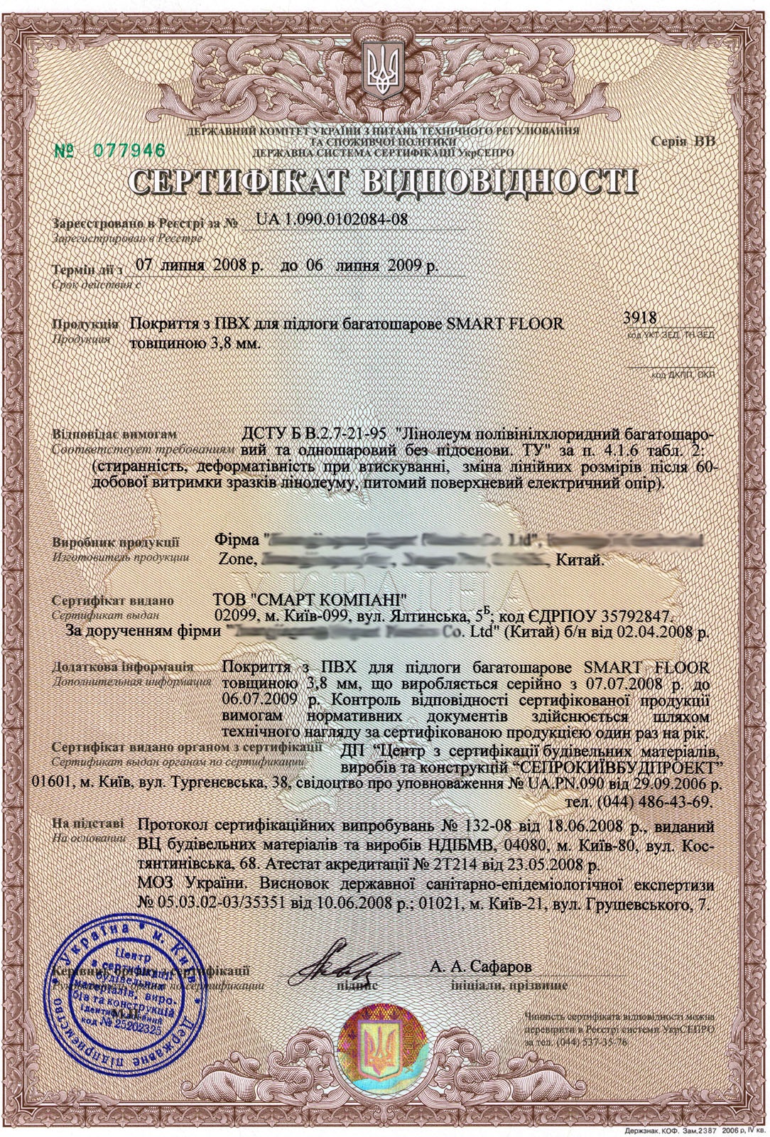 Сертификаты Smart Floor - Галерея