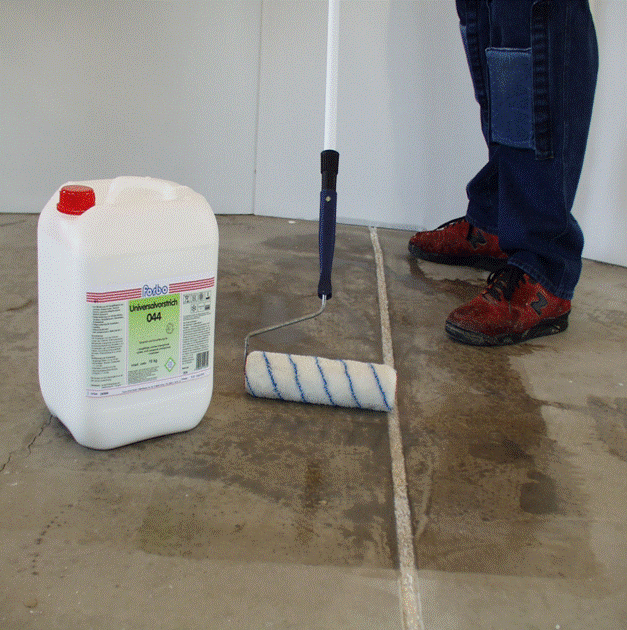 Завершив работы по подготовке основания, заливке массы и последующей шлифовки выравнивающей массы (для устранения цементного "молочка"), необходимо нанести праймер (Thomsit R777) на выравнивающие массы и можно приступать к устройству напольного покрытия.